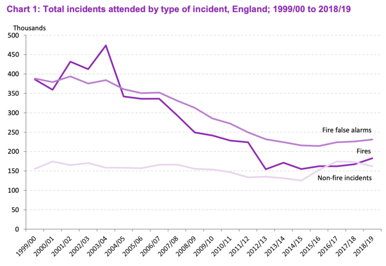 The Home Office states that “the increase in fire incidents from 2014/15 to 2018/19 was due to an increase in secondary fires linked to the hot, dry summer of 2018.”