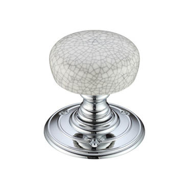 The Grey Crackle Porcelain Mortice Knob is a high quality, attractive mortice knob in a grey crackle porcelain with a polished chrome rose.