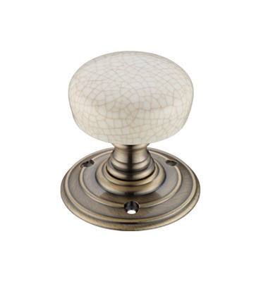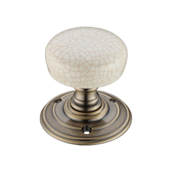 The Ivory Crackle Porcelain Mortice Knob is a high quality, attractive mortice knob in an Ivory crackle porcelain with a Florentine bronze rose.