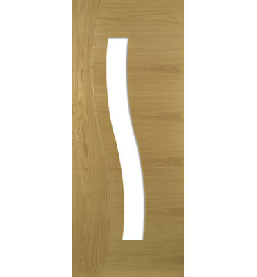 The beautiful curves of the glazed version of this pre-finished oak door accentuate the grain of the handpicked veneers to give an ultra-modern, sleek look.