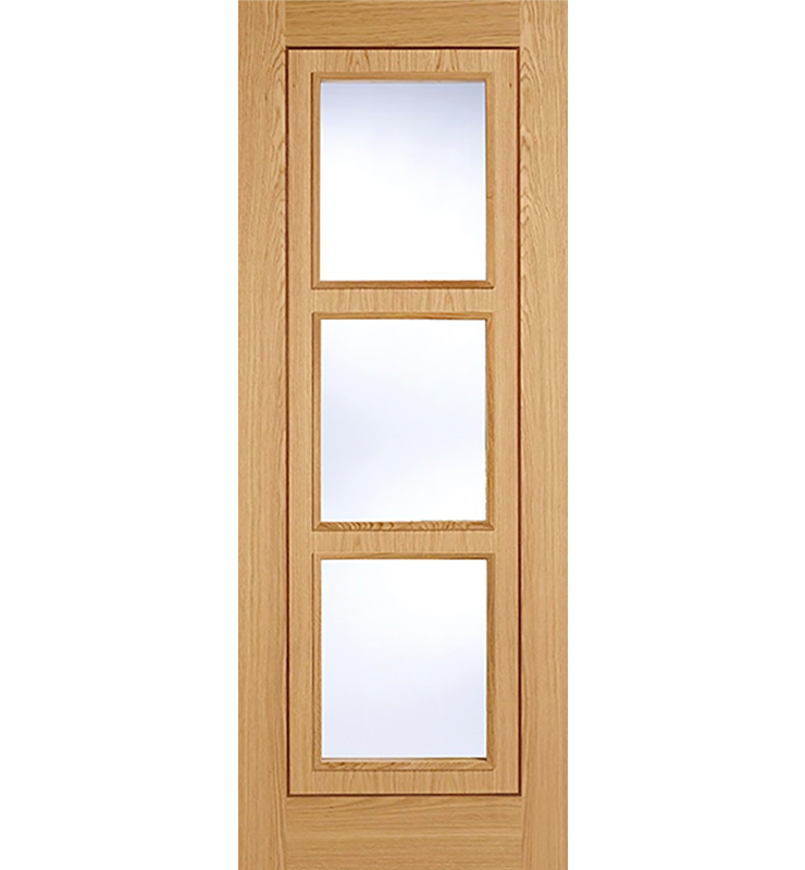 On this glazed option, three attractive rectangular clear glazed apertures allow light to pass between rooms, raised mouldings to both faces of the door add great visual interest.