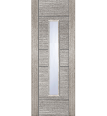 The Internal Light Grey Pre-Finished Corsica 18G Central Obscure Glazed fire door is a stylish horizontal panelled door.
