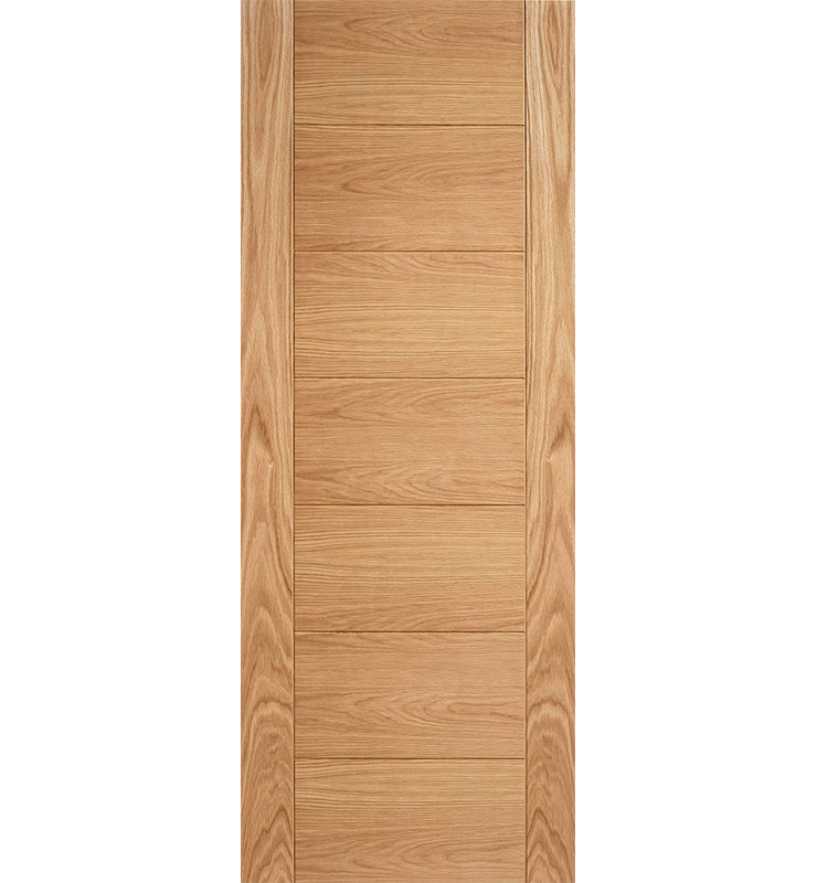 Featuring horizontal grain pattern within the panels of the door, with oak 'V grooves' picking out seven panels in the face of the door, this design continues to stir the senses and satisfy the trend towards modern interior design.