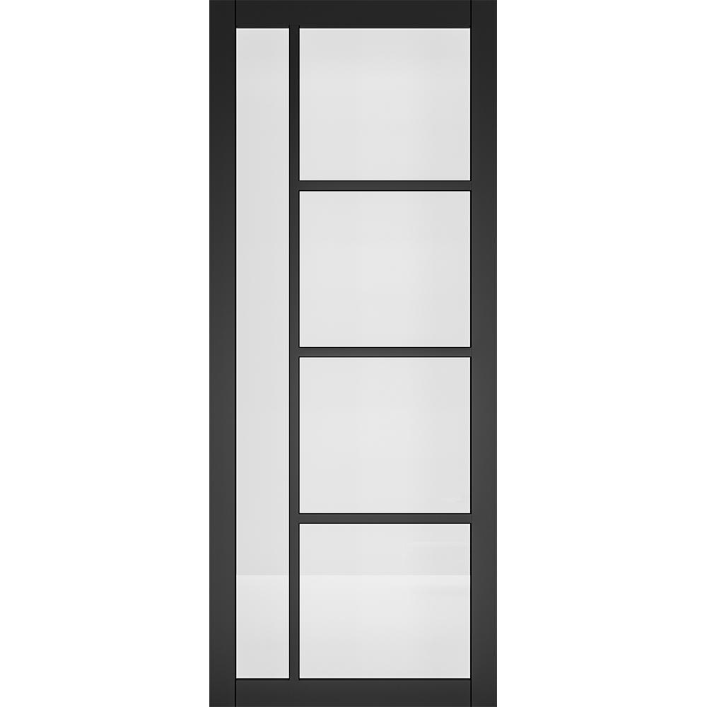 The Pre-Finished Black Brixton Glazed door from Deanta Doors forges a uniquely bold industrial experience. With an elegant asymmetrical profile and bold lines, this door brings an element of luxury and class to any property.