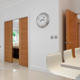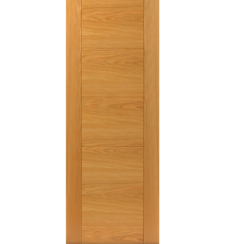Real timber grooves create a stunning look and pick out five panels down the centre of the door, complemented perfectly with a large clear, fire-rated glazing panel.