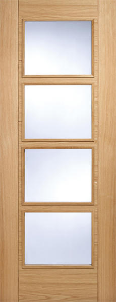 The Internal Oak Vancouver 4 Light Clear Glazed is a sublime designer oak interior door boasting sleek, elegant lines and delicate yet distinctive features. Also available in standard and glazed fire door options, the LPD Oak Vancouver door range continues to stir the senses of discerning customers of contemporary interior design.