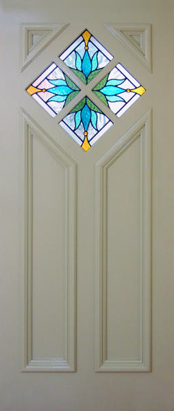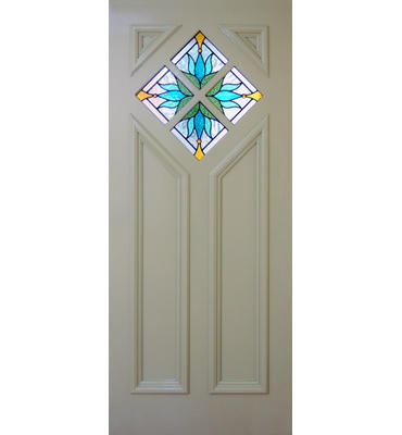 The glazing shown in the photo (flower design with geometric pattern) is available in both single and encapsulated glass options. If you wish for this feature pattern to be supplied with your door, please select it from the "Glazing" dropdown box above.