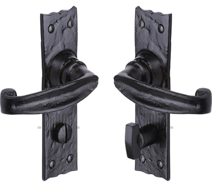 The Wellington Lever Bathroom is a traditional Tudor Black Iron design on a backplate. In an attractive and popular design, the relatively narrow backplate (39mm) makes the Wellington an ideal choice for bathroom doors with thinner stiles.