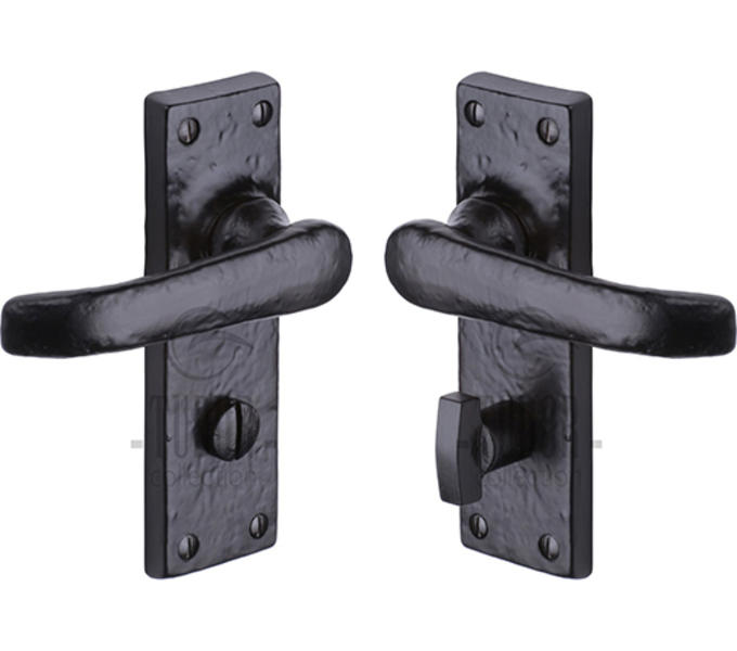 The Windsor Lever Bathroom is a traditional Tudor Black Iron design on a backplate. In an attractive and popular design, the Windsor is an ideal choice for bathroom doors requiring a traditional approach to ironmongery.