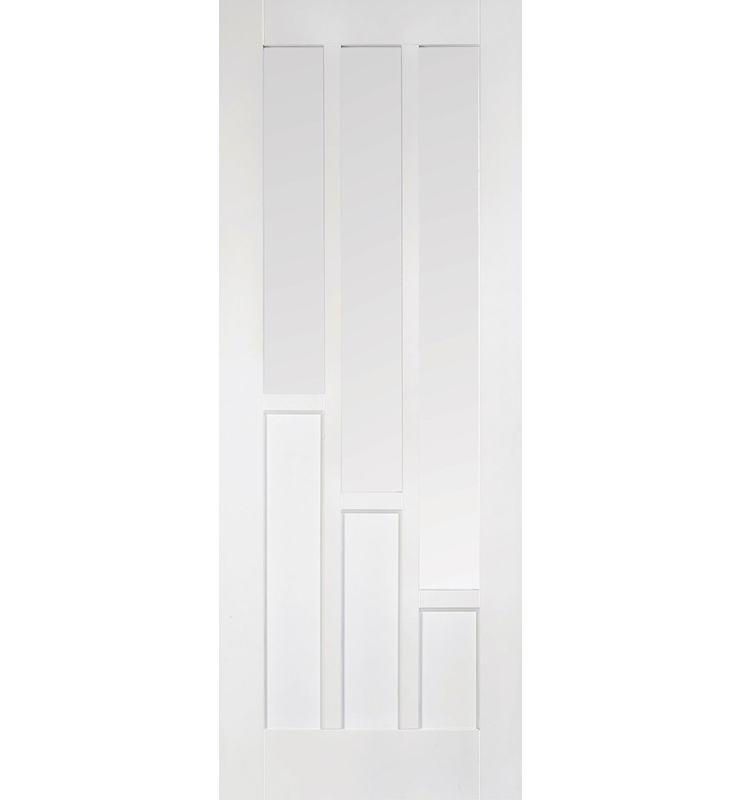 The White Primed Clear Glazed Coventry features an attractive and unique stepped panel design, setting it apart from the crowd and making it a fabulous option for those looking for a design which offers something different. Immensely popular since it's release in recent years, the style of this door offers an added visual interest outside of the usual 4 panel designs.