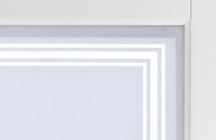 This glazed door is pre-glazed with a frosted toughened safety glass with a clear border. This glass option allows the light to flow from room to room, but with a degree of privacy.