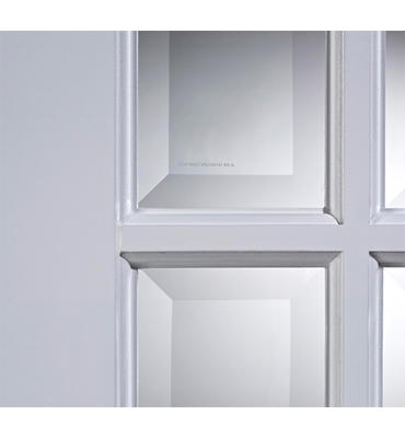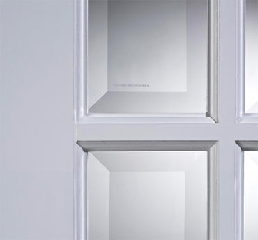 These double internal doors are supplied pre-glazed with Clear toughened, bevelled safety glass.
