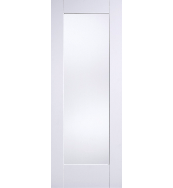 The White Primed LP Shaker 1 Light Clear Glazed door is a solid core contemporary glazed White Primed door.