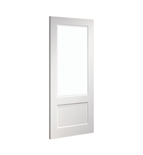 The White Primed Madison Clear Glazed from Deanta Doors is an attractive internal door with a premium look and feel. Ideal for a range of home settings, the attractive larger upper panel over a smaller bottom panel surrounded by mouldings creates a fantastic look. Equally at home in both contemporary and traditional interior design styles, this door will enhance the looks of your home whilst standing out from the crowd. Also available in complementary fire door and glazed door options, this range of doors allows you to create a fantastic look throughout your property at a great value price.