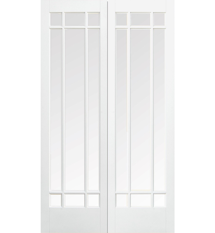 The White Primed Manhattan Glazed door pair from LPD Doors is a sophisticated design formed by using decorative beading to create nine individual glazing panels within this traditional style door.