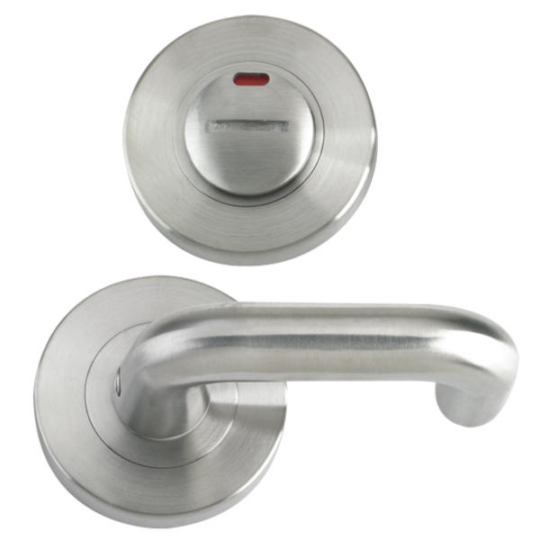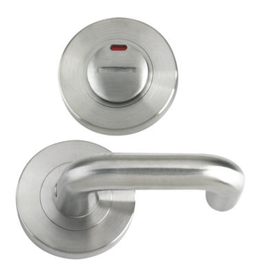 The outside of the turn and release features an indicator that shows the status of the lock at a glance, handily displaying whether or not the bathroom is in use.