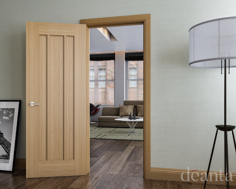 The Internal Oak Norwich range is a contemporary three vertical flat panel design with an attractive grain in the timber.