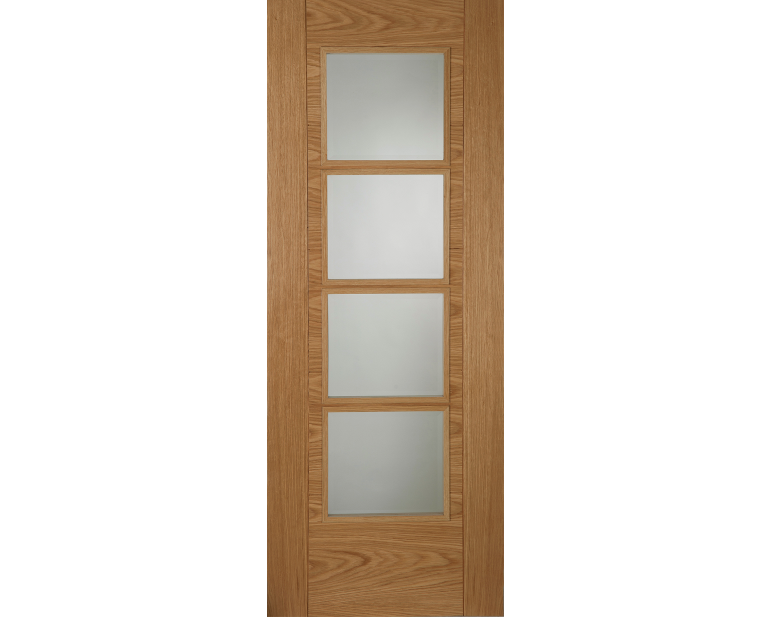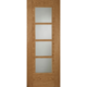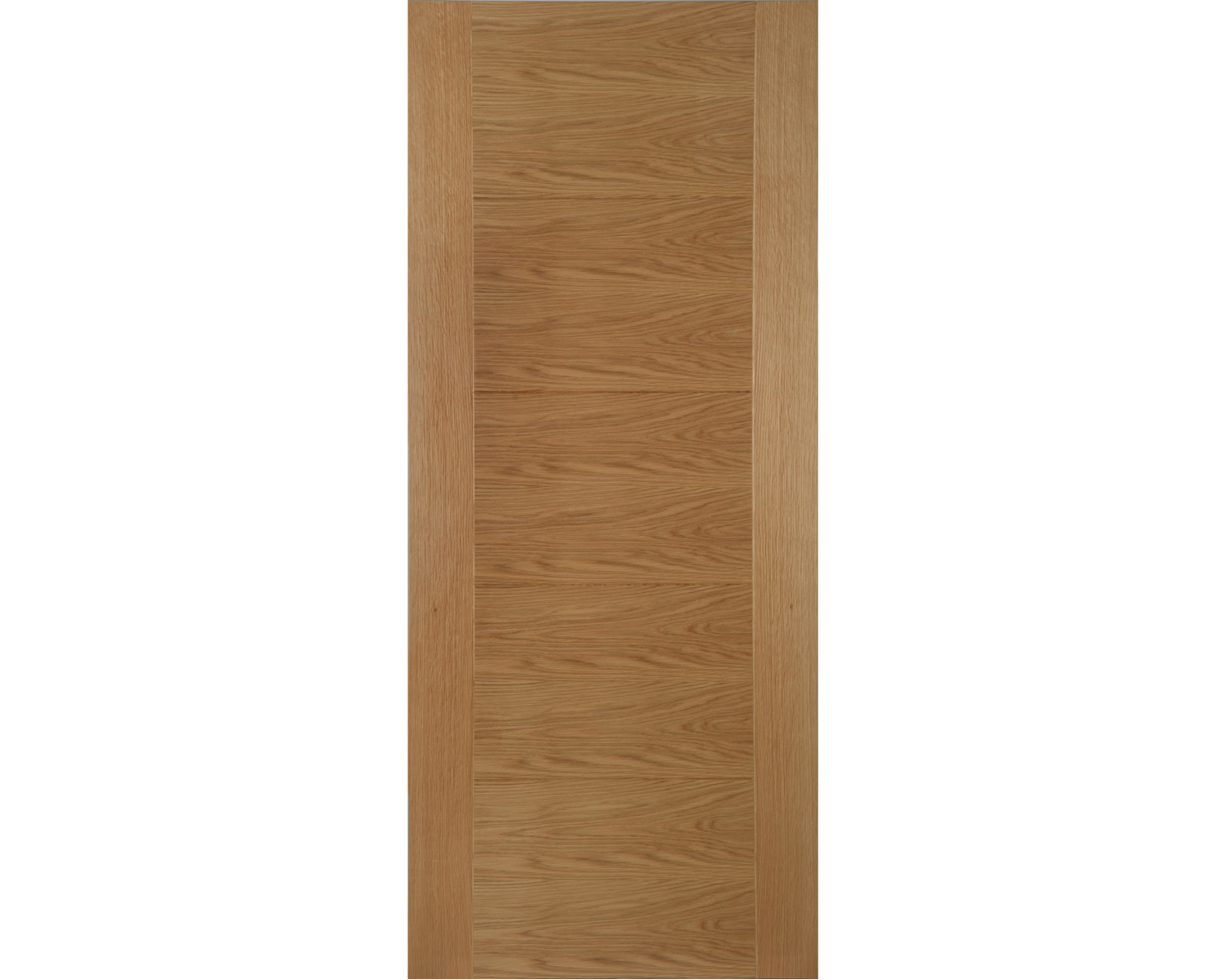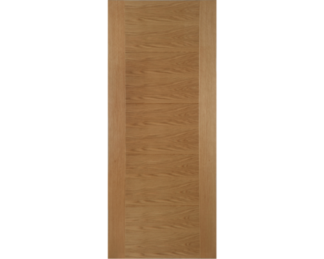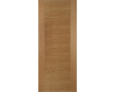 With an attactive modern design, five central panels are created in the face of the door, framed by feature V grooves. With 10mm solid oak lippings and a semi-solid core, these popular doors feature crown cut cross directional veneers and a quality clear satin factory finish.