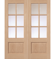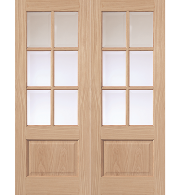 The Oak Dove / Trent doors are a great way to bring light into any room, in a stylish and practical manner. These doors have a six light design glazed with bevelled glass complimented by a raised and fielded bottom panel giving it a traditional look that will compliment any home.