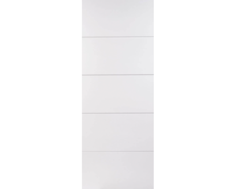 Grooves in the face of the door create elegance and great visual interest by picking out five horizontal panels in the door. A white primed smooth face gives a fantastic base for final decoration to suit your interior.